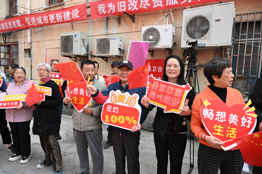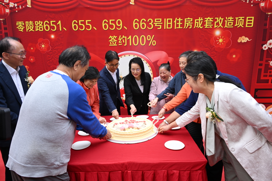 昨天(23日),这份沉重终于将被卸下。零陵路651、655、659、663号旧住房成套改造项目启动签约,随着最后一户居民落笔签字,所涉73证居民已全部完成签约,签约率定格在100%,“拆落地”改造工程就此启动。