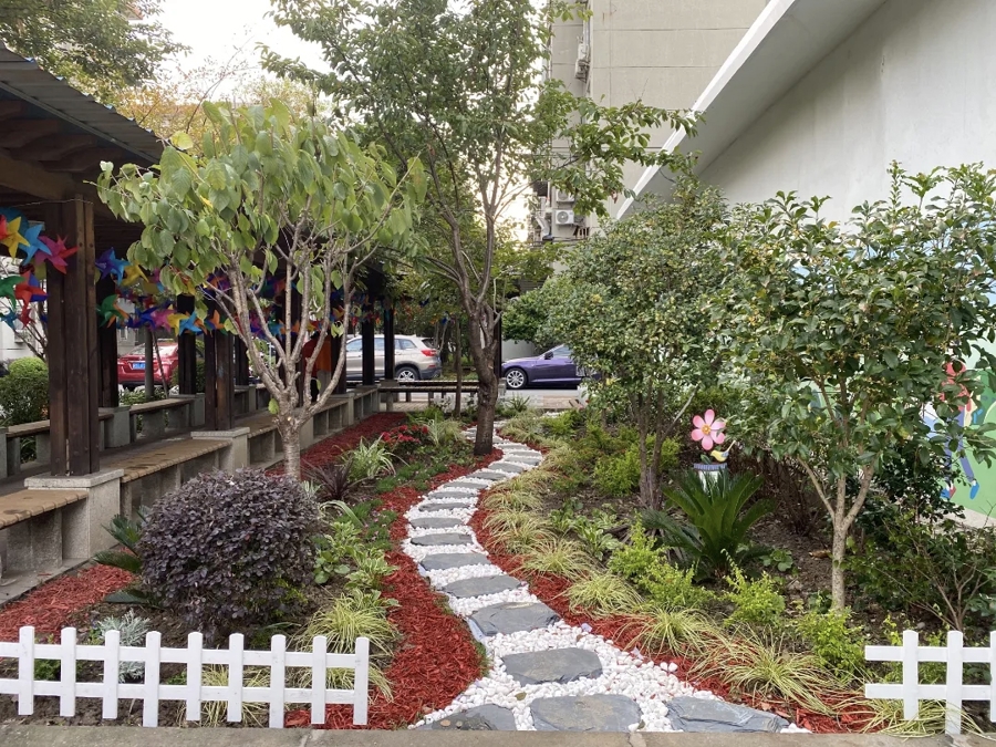 项目团队召开两场居民座谈会后,确定了改造方案,增设遮阳凉亭,并在凉亭内添置6 张彩虹休闲长椅,兼顾耐用性与舒适度。为了让环境更舒适,基金会同步启动“悦花园” 项目,在旁边开辟10平方米的小花坛,种植月季、绣球等易养护的花卉,搭配绿色灌木,打造 “凉亭+花园”的休闲组合。就这样,曾经黯淡的角落,成了居民喜爱的“休闲小天地”。