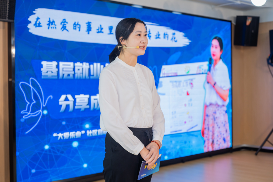 活动当天,来自社区的三位分享者用真实经历传递“乐业”力量:东一居民区应届毕业生薛嘉华以《从“幼教茧房”到“银发赛道”》,讲述在“大爱乐业”平台助力下突破专业局限、开启全新职业生涯的亲身经历;长岛路居民区创业者伏佳伟带来《揭秘从 0 到 1 的实干密码》,用自身经历证明年龄不是创业的阻碍,在街道全链条创业服务的帮扶下,充分挖掘个人特长,且不断坚持,才是成功的关键;荷三居民区就业保障员韩卓韵则以《在热爱的事业里,开出专业的花》,分享基层就业工作者倾听居民需求、自身成长,用耐心与专业托起无数人“就业梦” 的服务日常。